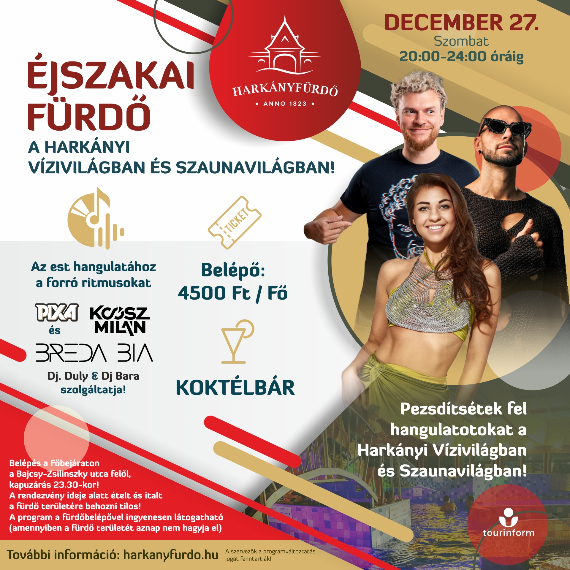Online jegyvásárlás: https://www.tixa.hu/harkany-gyogyfurdo-ejszakai-furdo-251227