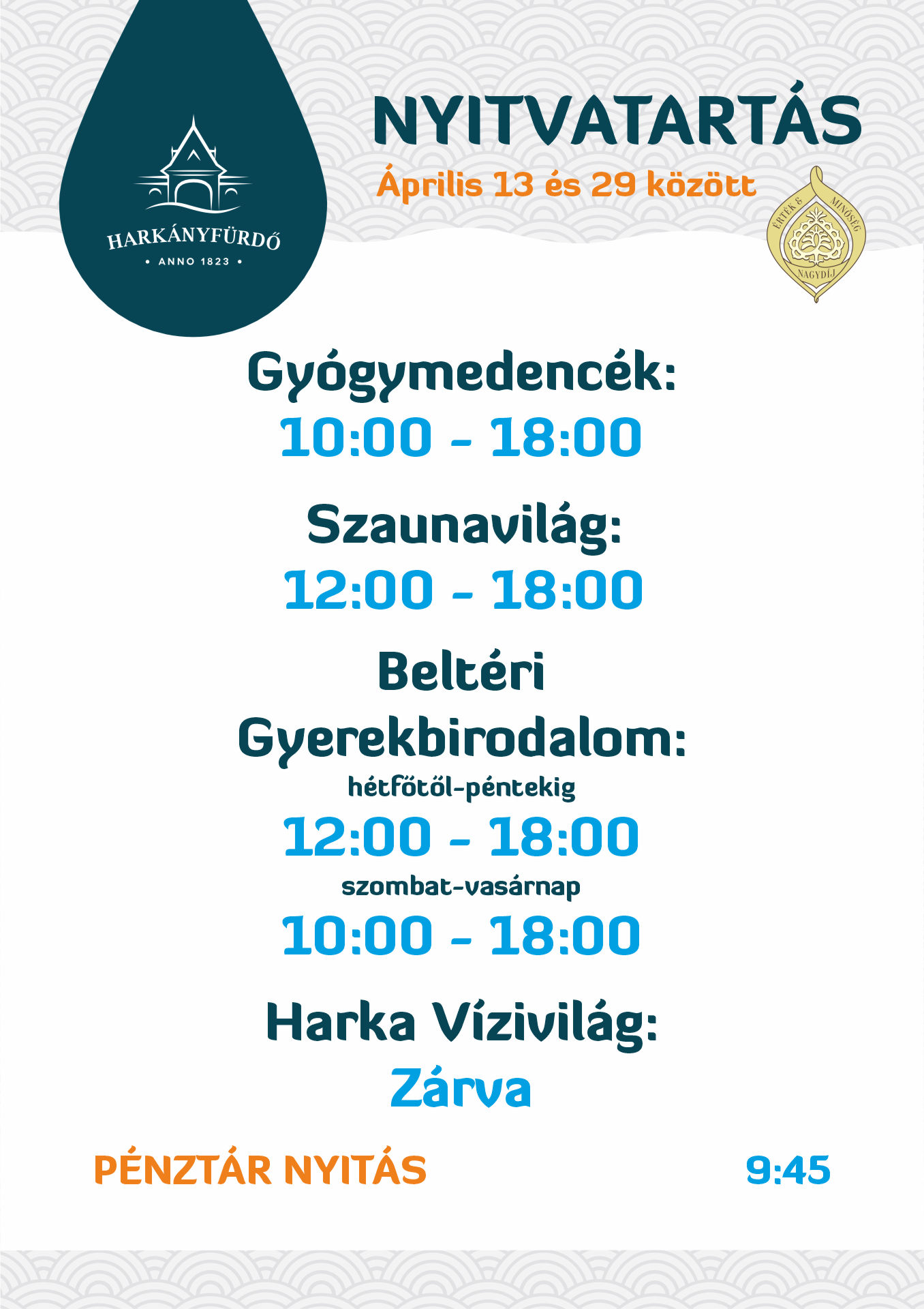 Tájékoztatjuk Önöket, hogy a Harka Vízivilág 2026. április 13. és 29. között garanciális munkálatok miatt zárva tart.